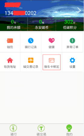 綁定完成之后就可以選擇租車模式界面下【我有借車卡】掃碼借車了,