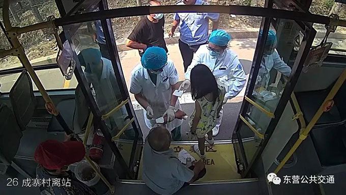 救人后的孫建強仔細檢查了三人的傷勢,“由于電動車側翻擠壓,大爺胳膊受傷,被扎了玻璃碴子,大娘腰部受傷,小女孩的眼睛受了傷,腿也受了傷,我就趕緊撥打了120?!蓖瑫r,孫建強向所在車隊匯報了遇到的突發情況。車隊領導當即表示,安頓好車內乘客,先救傷者。在等待救護車到來的時間,孫建強從公交車上拿了些衛生紙和礦泉水,簡單幫三人清理了傷口。23日的東營正是高溫天,氣象臺發布了高溫紅色預警,當天的氣溫最高達到了41攝氏度,非常炎熱,“我們的公交車上都開著空調,我就把他們扶到公交車上休息?!本茸o車很快就來了,醫護人員在給傷者進行包扎的時候,孫建強一邊安撫老人,一邊向老人詢問要不要幫忙聯系家人,老人告訴了他村里書記的電話。經聯系,村大隊書記表示立即安排相關人員跟進。